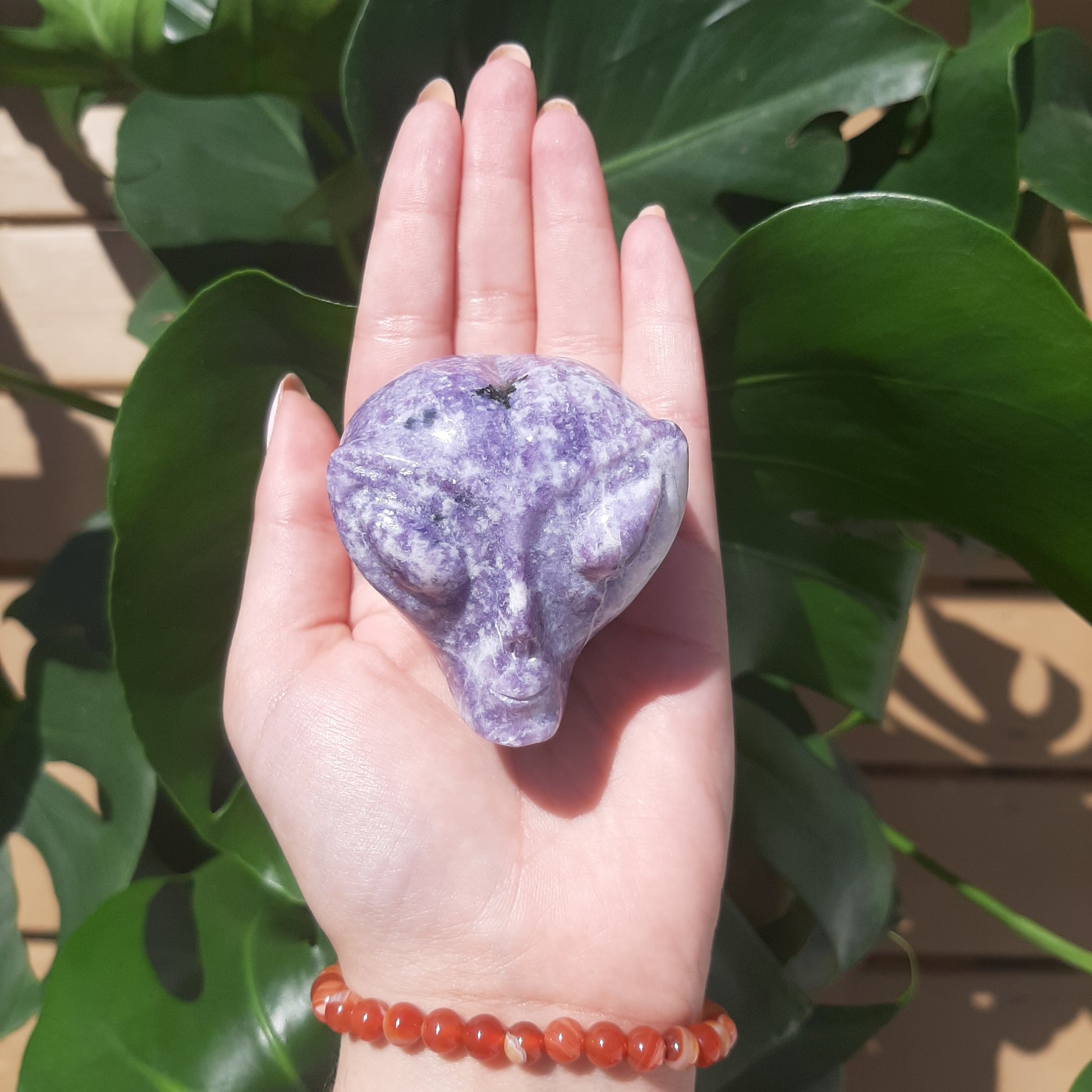 By Selecting (1) item, you'll receive 1 Lepidolite Alien Head Carving.